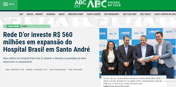 ABC DO ABC_Rede D’or investe R$ 560 milhões em expansão do Hospital Brasil em Santo André