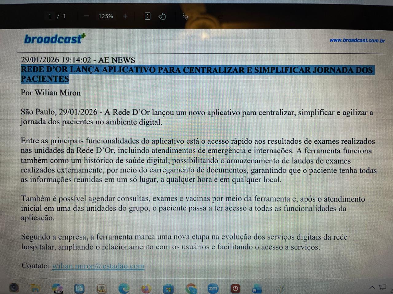 Coluna Broadcast do Estadão – Rede D’Or lança aplicativo para centralizar e simplificar jornada dos pacientes