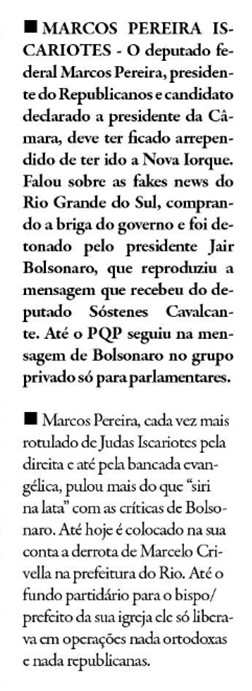 Correio da Manhã – Coluna Magnavita: Marcos Pereira Iscariotes