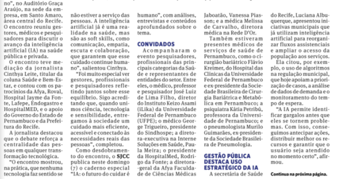 Jornal do Commercio – Em painel no JC, médicos refletem sobre como a IA apoia um cuidar mais humanizado