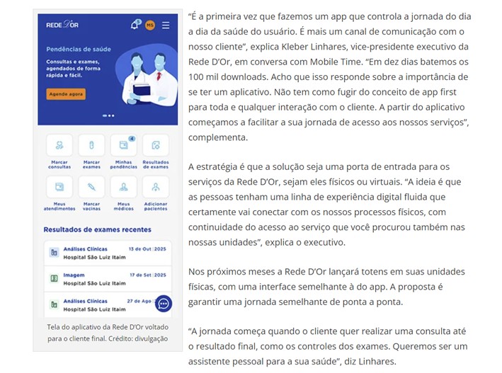 Mobile Time – Aplicativo da Rede D’Or tem 100 mil downloads em 10 dias