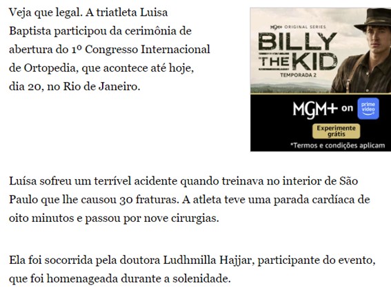 O Globo – Triatleta Luisa Baptista participa de homenagem à médica Ludhmilla Hajjar em congresso no Rio