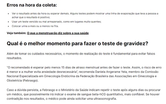 Portal Drauzio Varella – Falso positivo ou falso negativo? Entenda quando o teste de gravidez pode falhar